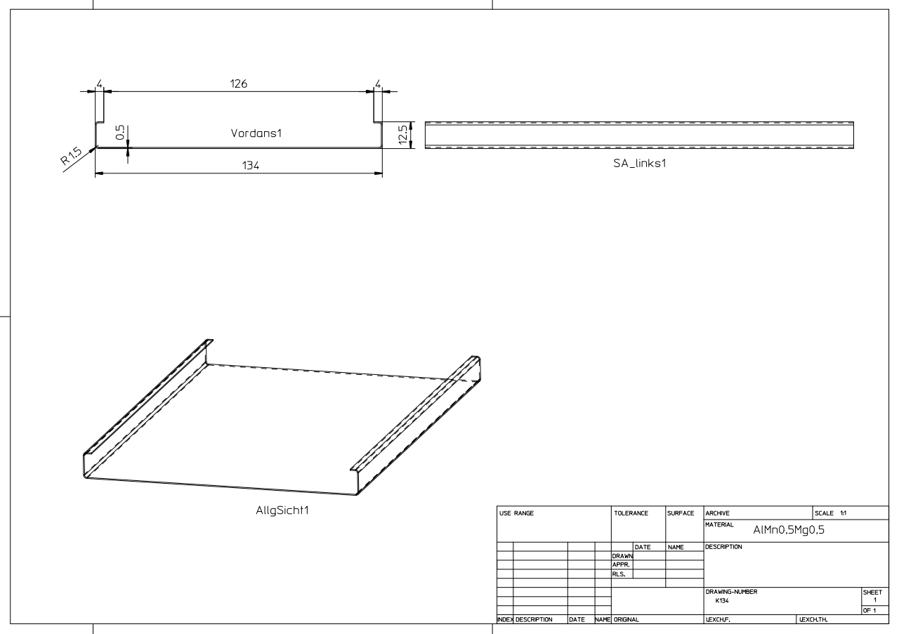 Abgehängte ORIGINAL DOBNER Aluminium-Paneeldecke Typ K-134 / KP-134