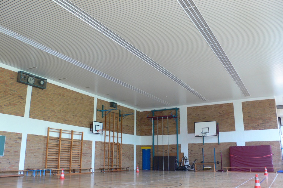 Die abgehängten, ballwurfsicheren ORIGINAL DOBNER Sport-Paneeldecken sind enorm langlebig und jederzeit einfach und unkompliziert zu reinigen.