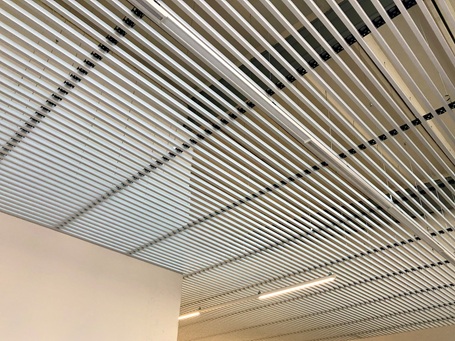 Abgehängte, lineare Deckensysteme sind sehr aktuell und hochmoderrn. Zeitgemäße Architektur verwendet lineare Strukturen!