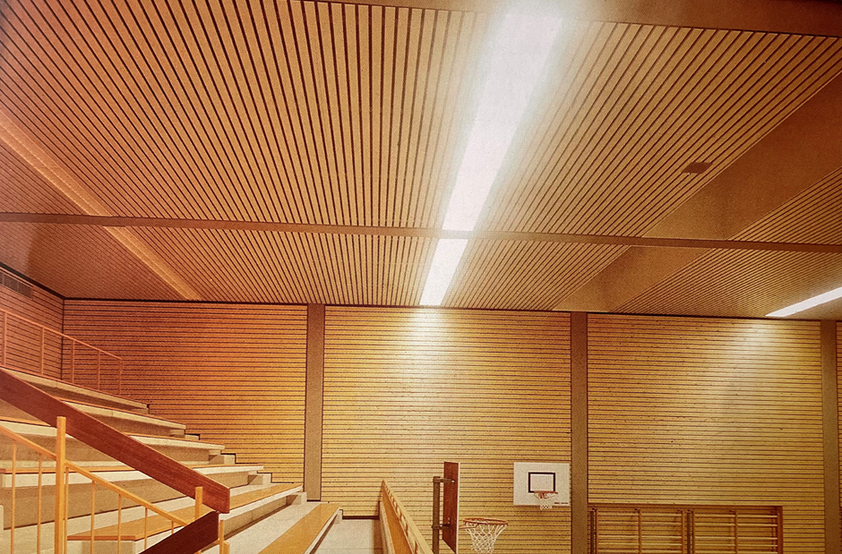 Die abgehängten, ballwurfsicheren ORIGINAL DOBNER Sport-Paneeldecken sind enorm langlebig und jederzeit einfach und unkompliziert zu reinigen.